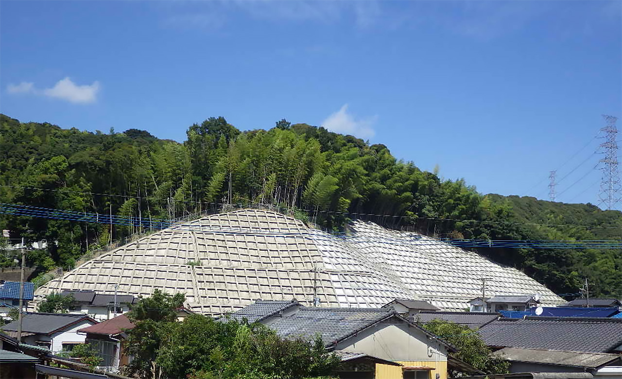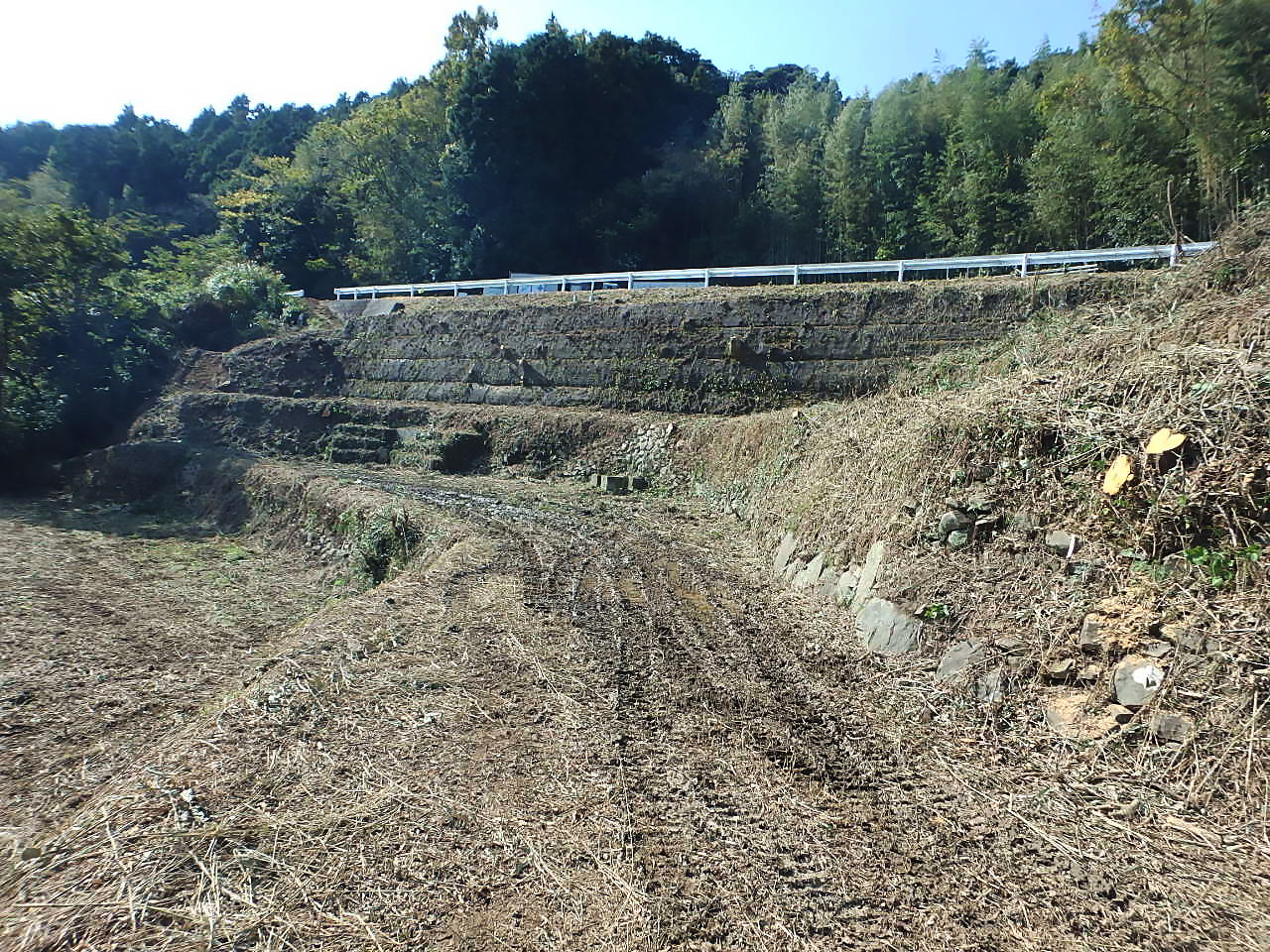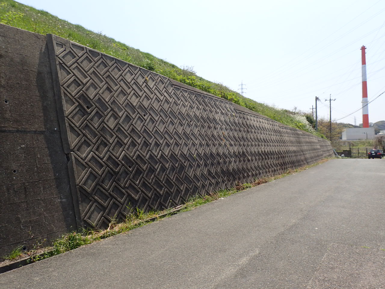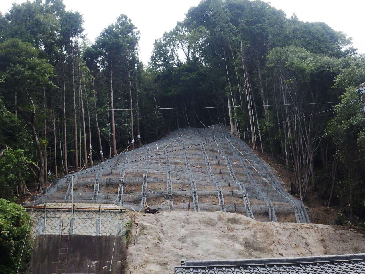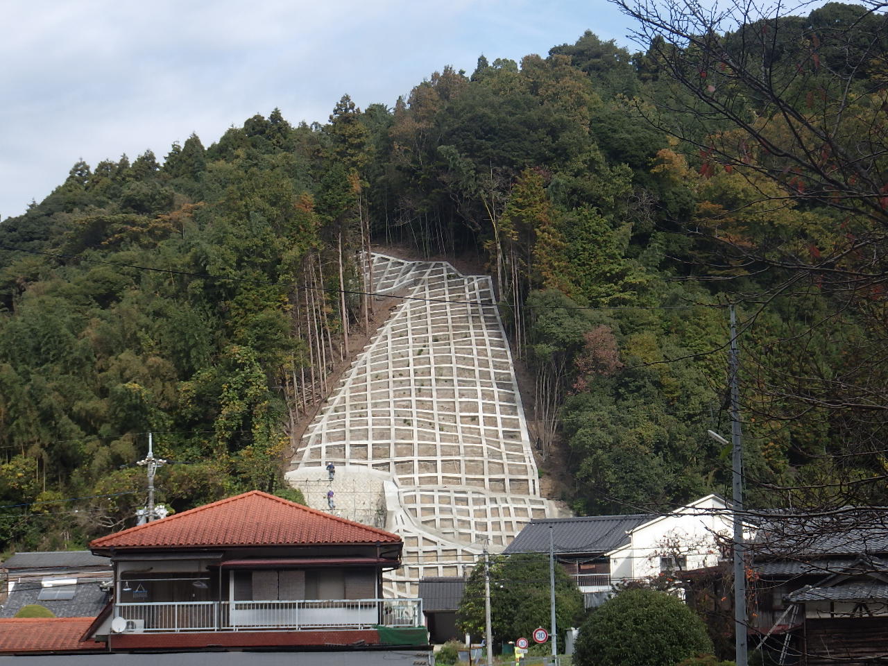 | 内容 | 民家の裏の補強工事です。 伐採を行い、法面整形後、法面保護(吹付法枠工)を施工しました。 自然災害防止(急傾斜)工事では、鉄筋挿入工を行いました。 |