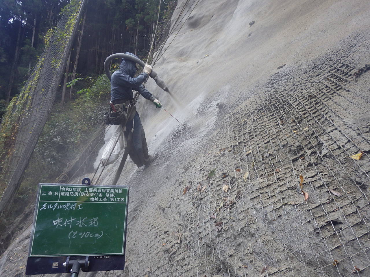 モルタル吹付工+鉄筋挿入工
