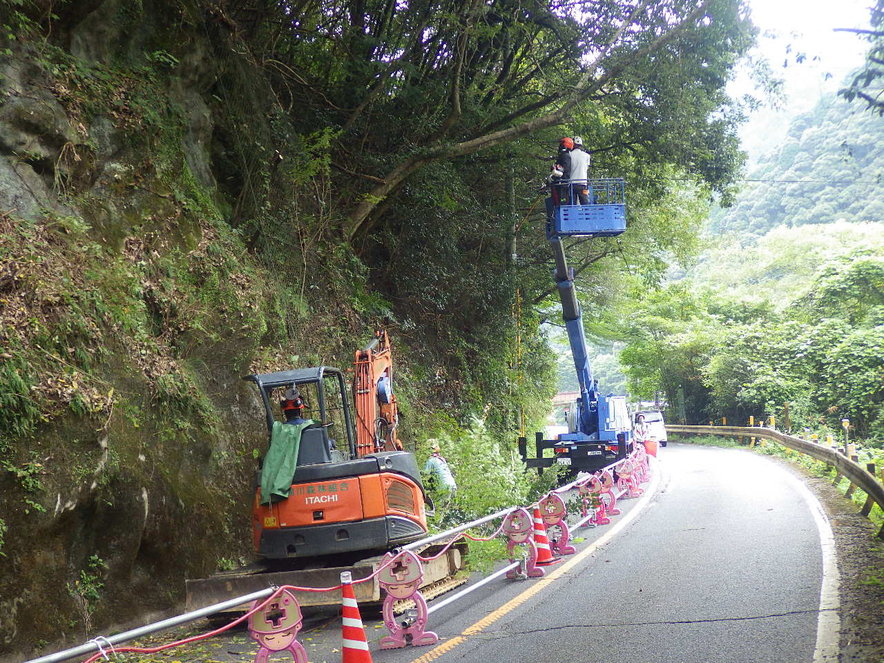 | 内容 | 本工事は一般国道187号線において、伐採施工後に高エネルギー吸収防止柵を設置して、落石を防止する工事を行いました。 品質管理、出来形管理においては、発注者の要求する数値以上を確保する事が出来ました。 |